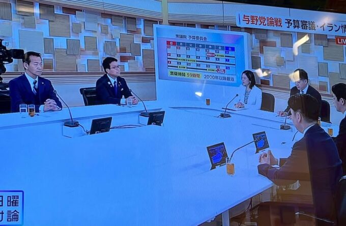 NHK日曜討論に出席。予算審議への対応、イラン情勢による日本への影響と対策、ホルムズ海峡封鎖への艦船派遣対応、日米首脳会談への対応、今後の国会審議について、各党の政策責任者と討論。皆さん、お疲れ様でした。