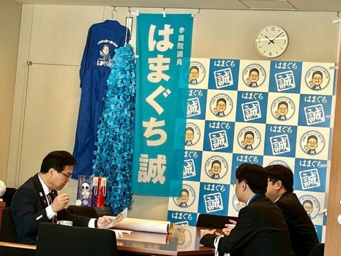 はまぐち誠チャンネルの動画撮影、国民民主党サブチャンネル『対決より解説』への対応、自動車総連ファミリーデーで多くのご家族が国会に来ていただきました。ありがとうございました。また、林テレンプ労組の皆さんとの意見交換。国会訪問、ありがとうございます。法制局の皆さんと工業高校への支援、中小企業の人材育成等に対応する議員立法に関して、意見交換。ご対応ありがとうございます。